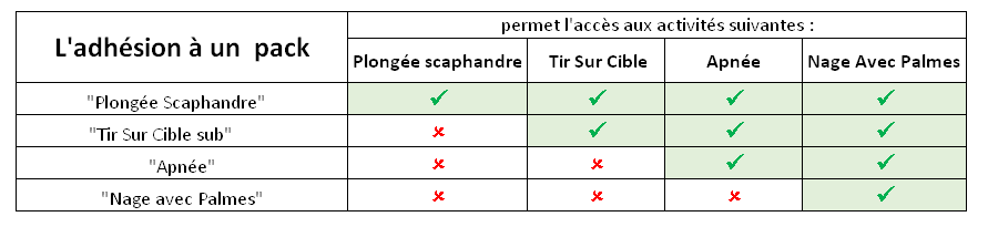 L'ADHESION A UN PACK PERMET L'ACCES A CERTAINES ACTIVITES